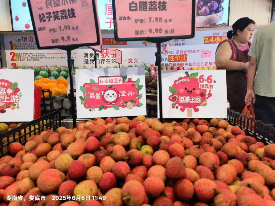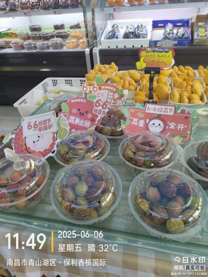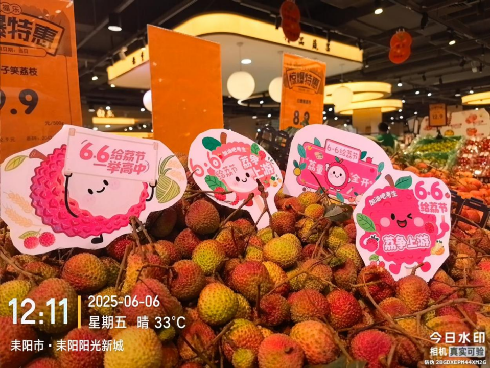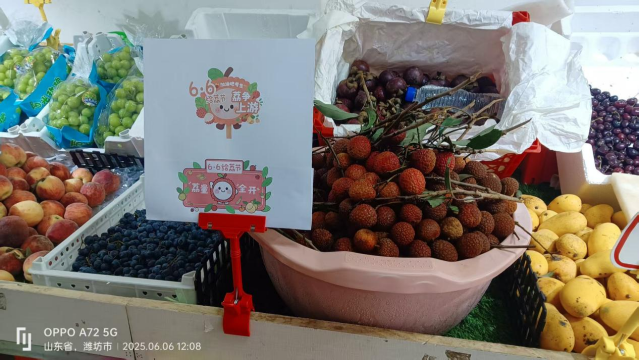 此次“66给荔节”影响力广泛,全国24个省市地区的50多家相关水果批发超市积极响应,纷纷展示节庆物料,将活动氛围烘托得热烈非凡。从繁华的都市到热闹的小城,广东荔枝的身影随处可见,成为街头巷尾热议的话题。